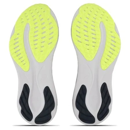 Flytefoam™: A nossa tecnologia revolucionária localizada na entressola é feita com microfibras de celulose adicionadas à espuma de EVA. É o material mais leve da entressola que já fabricamos. Dependendo da experiência e dos resultados que desejamos fornecer aos corredores, podemos adaptar a densidade e as propriedades deste material. Benefícios: leveza, conforto e durabilidade. GEL™: A nossa tecnologia ícone usada pela ASICS desde 1986 protegendo o seu corpo do impacto gerado a cada passo, contribuindo para reduzir a fadiga muscular. A tecnologia em GEL™ está localizada principalmente nas áreas de maior carga no momento do impacto, na região do calcanhar e na articulação do dedão do pé. Benefícios: Absorção do impacto, proteção e conforto. Ahar Plus™: Solado de borracha com formulação especial para resistir à abrasão. O AHAR Plus é a evolução da tecnologia inicial sendo mais leve e resistente. Benefícios: flexibilidade e durabilidade.